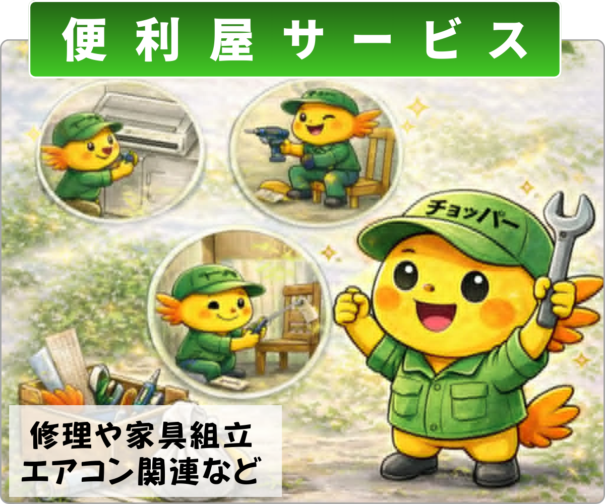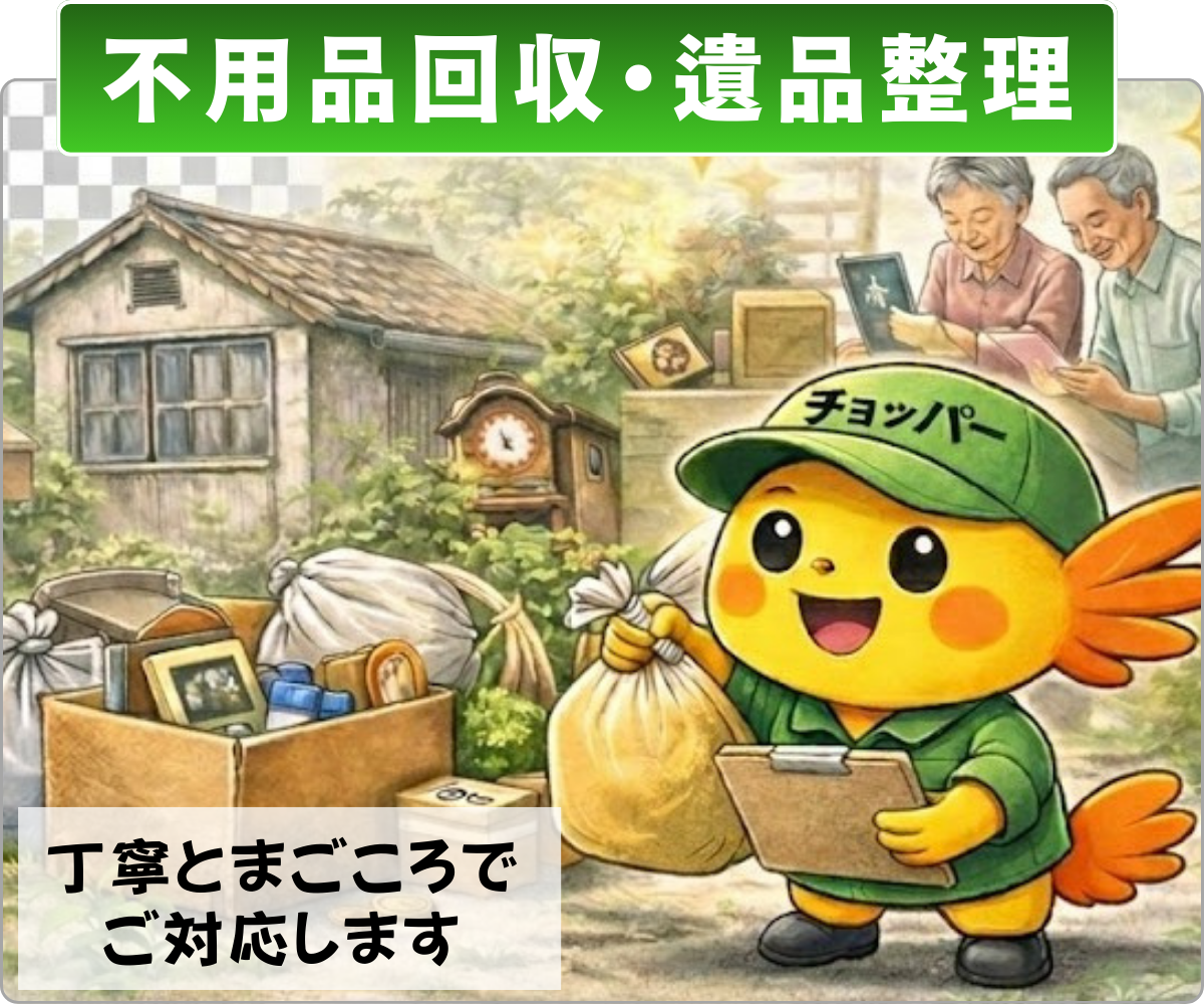 INFO pickup 買取バリューコラムの「家具買取業者のおすすめ比較」に載せていただきました。 買取バリューコラムの「家具買取業者のおすすめ比較」に載せていただきました。 便利屋チョッパーの売りは、海外リユースも行っているので、家具だけでなく、食器や衣類、おもちゃなど、他社では買取できないような広範囲なジャンルのものを広範囲でまとめて買取できる事です。 三重県エリアで家具の買取を考えている方は、ぜひお気軽に便利屋... 2025年5月2日 便利屋チョッパー