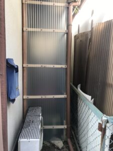 便利屋 三重県伊賀市|猫侵入防止の波板貼り付け工事 2023年9月2日 2023年10月2日 便利屋チョッパー 伊賀市で猫侵入防止のための波板貼り付けのご依頼 家の庭に野良猫が入り込むので、入らないように波板を貼って欲しいとのご依頼を伊賀市荒木のお客様よりいただきました。 波板の貼る場所に不要な木が生えていたので、まずは木の伐採から 木のなくなったところのサイドに波板を上から下まで、野良猫が侵入しないように、ピッチリ貼り付け。 さらに正面にもピッチリ波板を貼り付けて、工事完了。 お値段や仕上がりにお客様にも大変満足していただけました。 作業のやりにくい、狭い場所でしたが、無事工事完了して良かったです。 Facebook postはてブLINEPocketFeedly