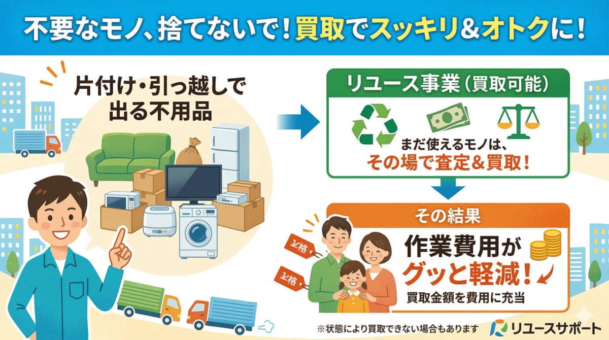 不要になった物は買取も可能。= 作業費の軽減も可能